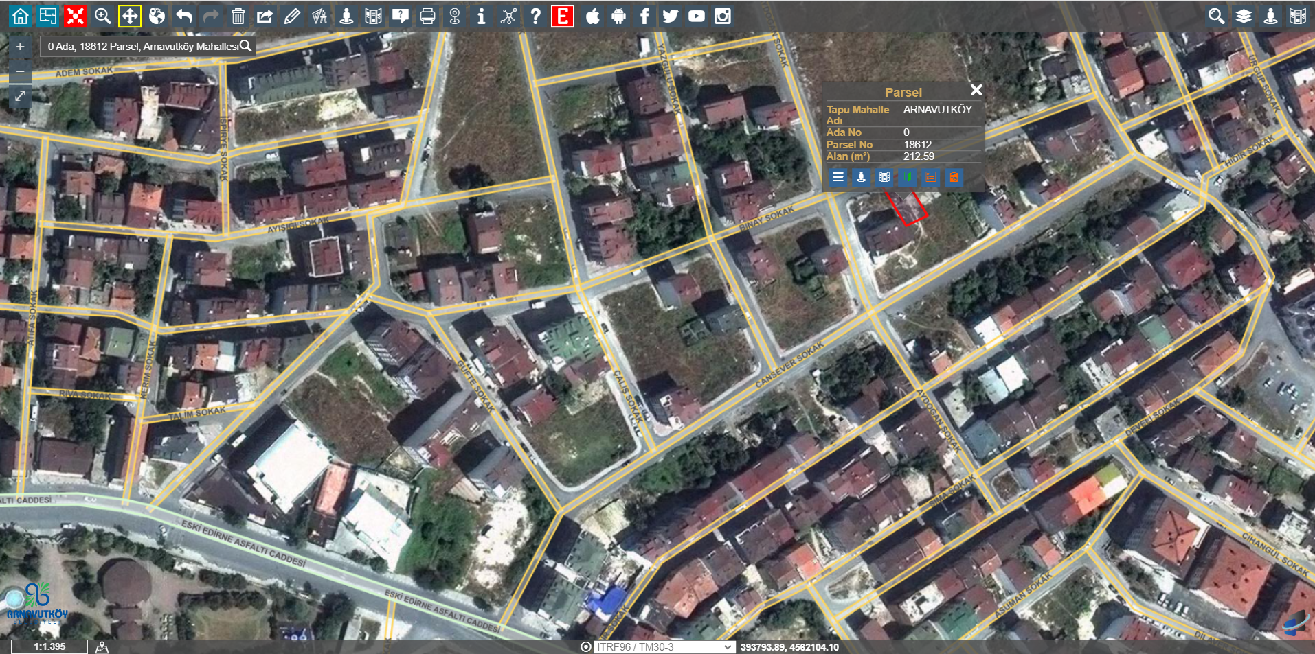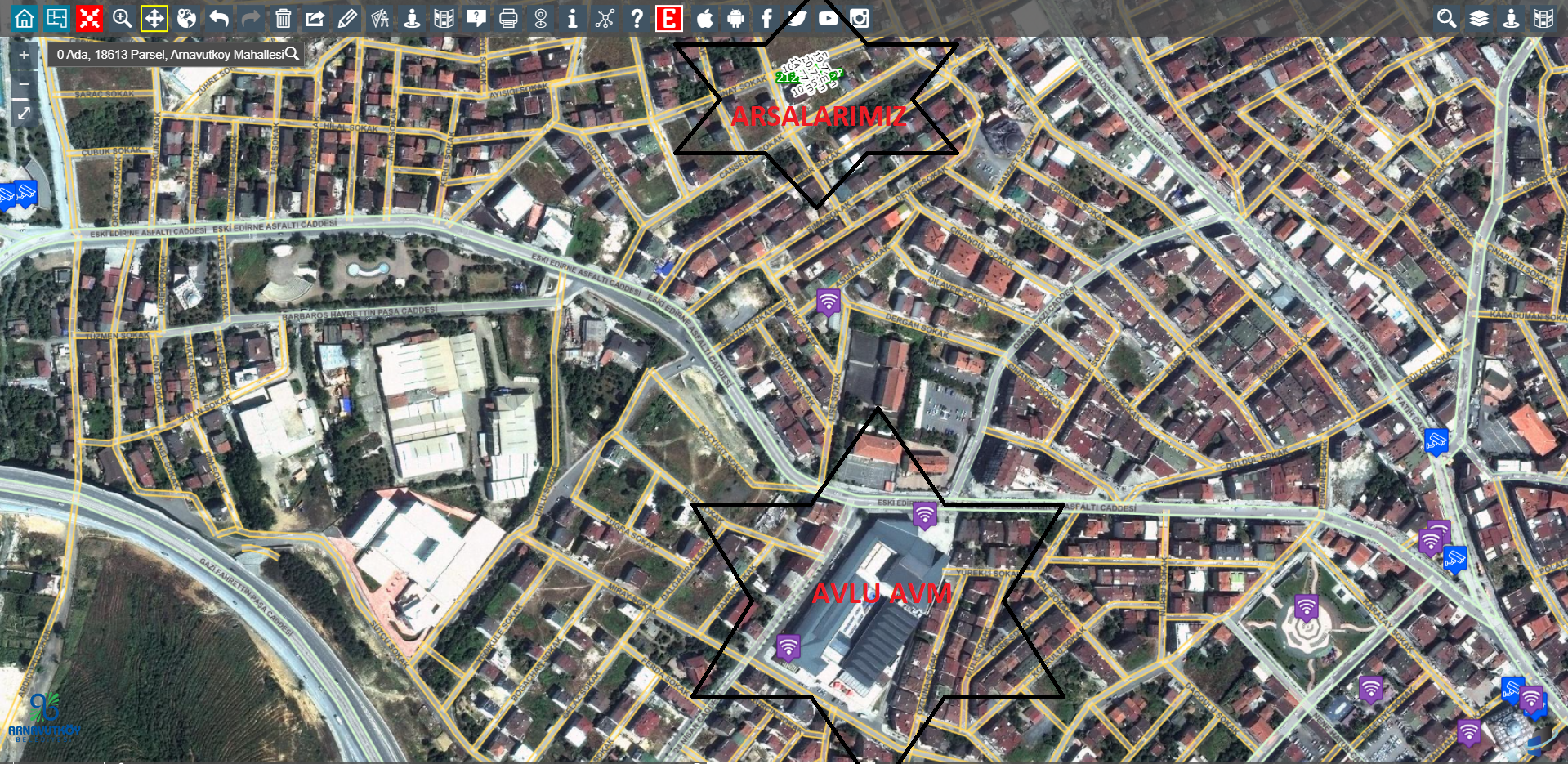 18612 parsel arnavutköy merkez 212 metre .18613 parsel kozlar arnavutköy merkez 202 metre.